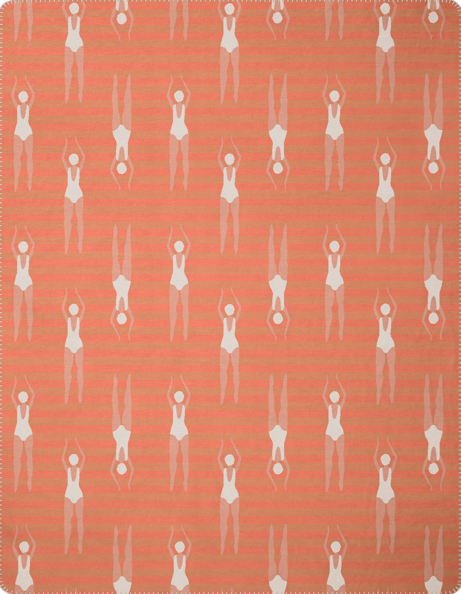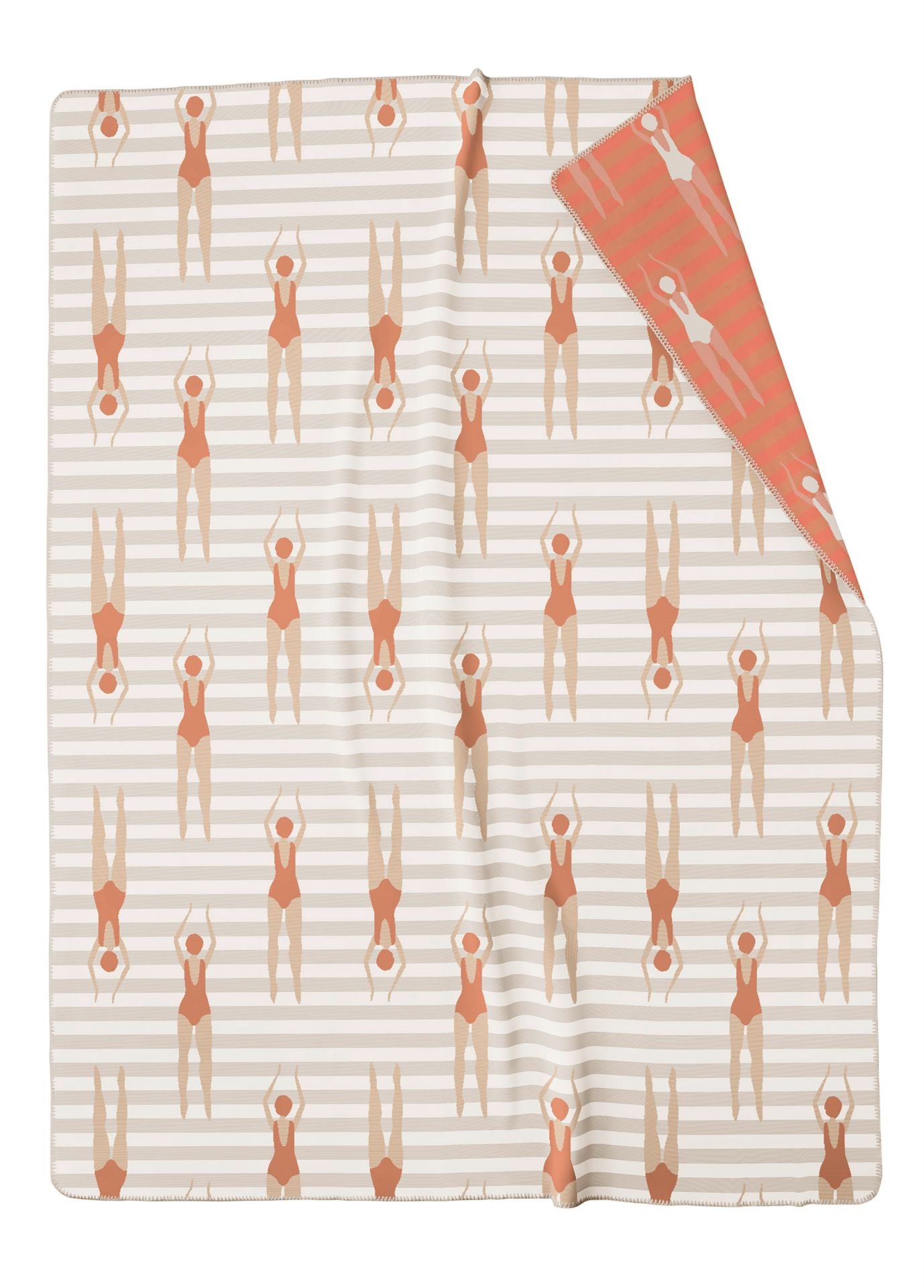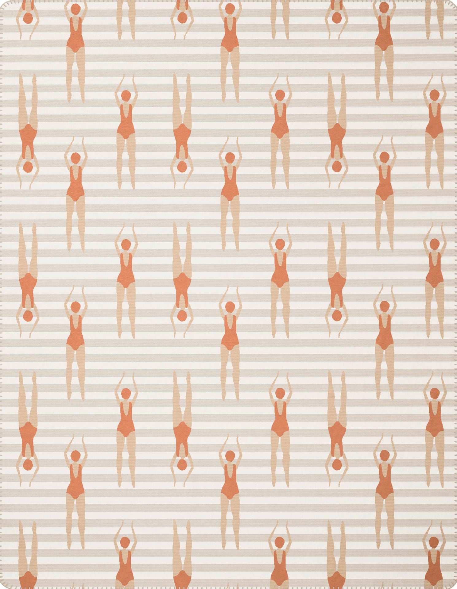 - Combination of nautical stripes and a trendy retro swimmer's design