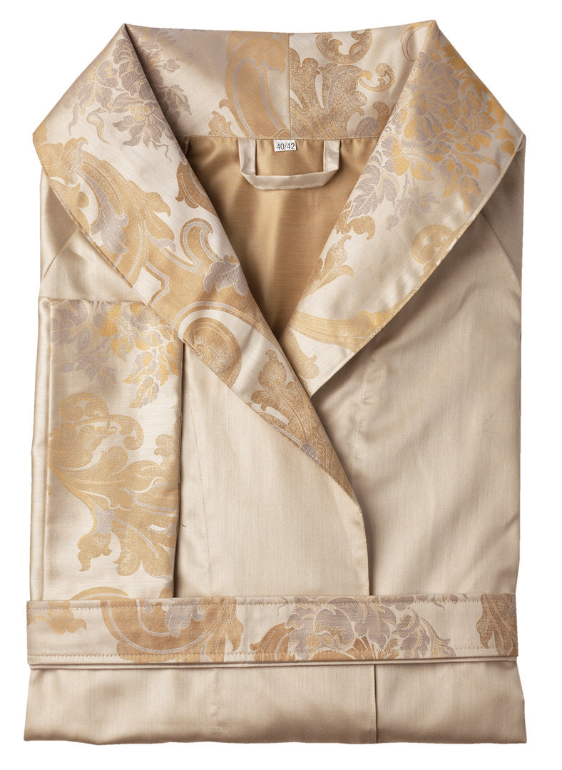 - Luxurious shawl-collar dressing gown, made of 100% cotton Mako-Brocat-Satin